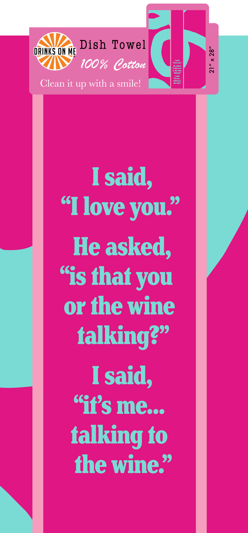 Dish Towel: Wine Talking Bring on some good cheer with these laugh out LOUD dish towels 100% Cotton 21"x28" Each towel comes with a hangtag and hook to hang