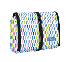 Whether you're on the go, or using products at home, a hanging option is essential to convenient storage. Simply fold the bag (like a burrito) when the hanger is not in use. Water-resistant coated cotton makes cleaning easy, inside and out. The clear compartments make finding what you need fast.